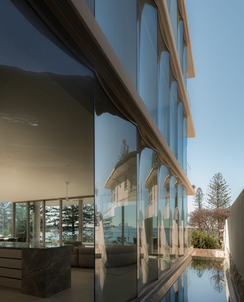An all-encompassing experience of the beachside landscape has been made possible through the innovative use of curved glass in Glasshouse, a recently completed exclusive apartment development on the Gold Coast.