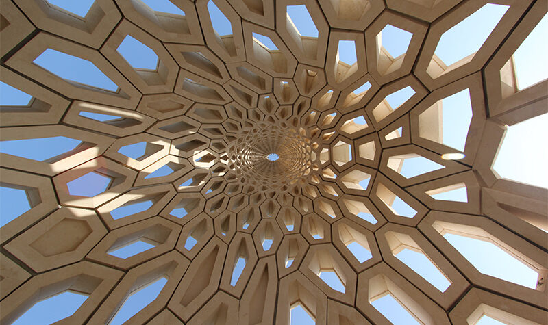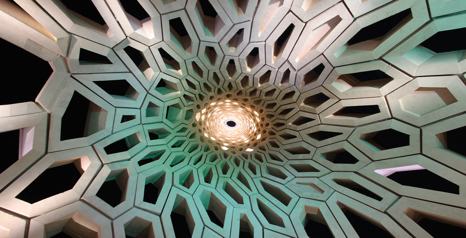 The KAUST Beacon comprises 187 individually cast amorphous hexagonal concrete blocks, each weighing up to 18 tonnes. The tower was constructed in three sections with each relying on the assistance of mobile cranes to lift pre-cast elements into place. The lower spire was completed by slotting together exterior and interior pre-cast elements, sandwiching steel reinforcement and in-situ concrete between to create a self-supporting structure. The slender upper spire of the tower is made solely from pre-cast blocks. The durable and high-quality off-white concrete has a predicted life span of 100 years.