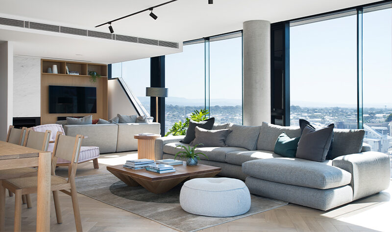 NORTH residences are highly attuned to a subtropical, coastal climate and promote passive cooling through effective cross ventilation pathways and extensive sun shading. The building’s bespoke western screen works to control privacy, frame views out and draw natural light and ventilation into the interior. Importantly the screen system shades the building from harsh afternoon sun to create a comfortable interior living environment. Sun protection is further enhanced by horizontal slab extensions along the north and eastern faces which shade the facade.