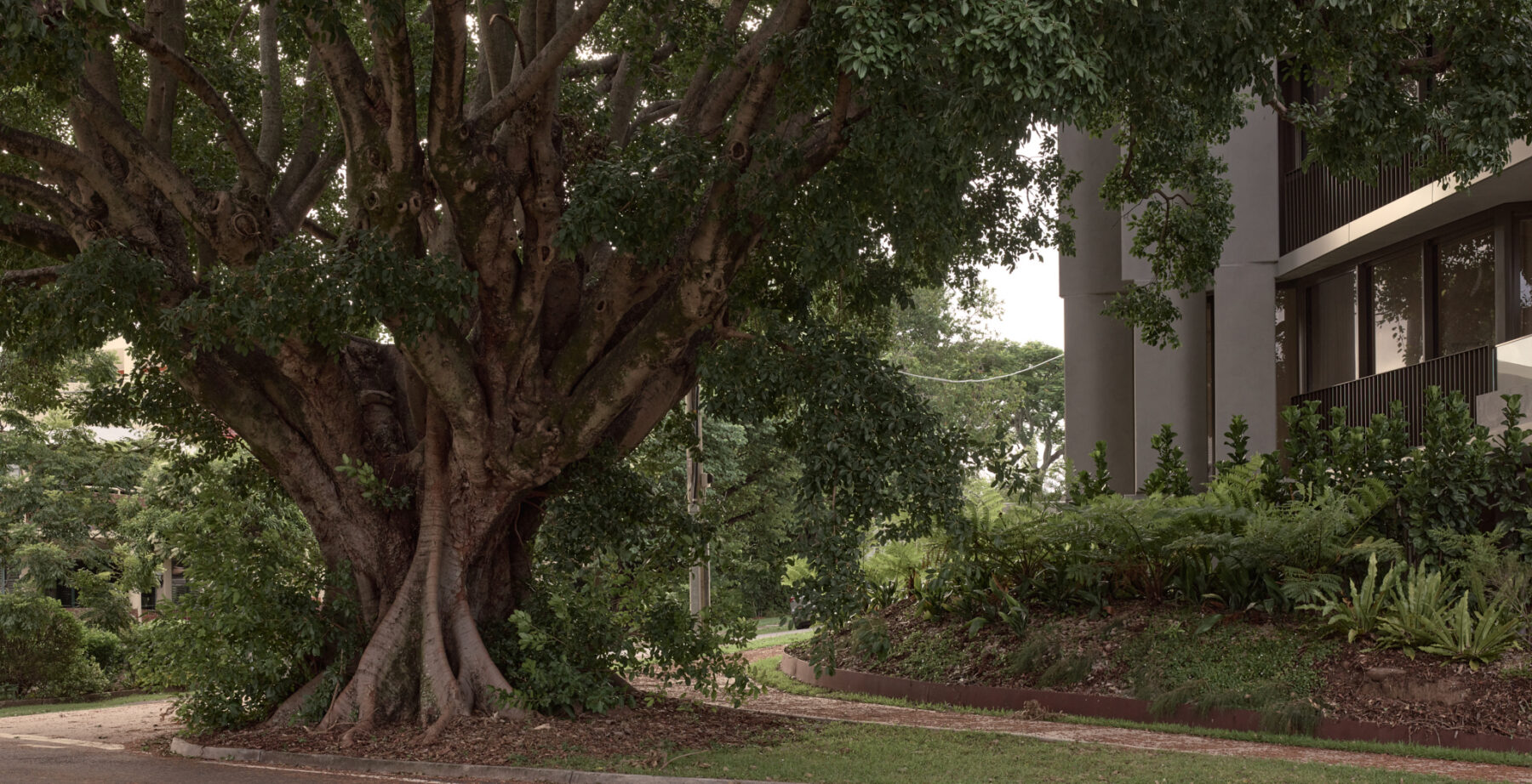 The preservation and augmentation of the natural landscape is central to the architectural response. Care has been taken to ensure that the adjacent Fig tree is preserved and acknowledged through arborist consultation and carefully considered setbacks. Considerably more opportunities for natural landscape is enabled through the articulation of building edges including planted balcony balustrades and pocket gardens created on the western edge. The importance of these elevated gardens is two-fold; to provide visual relief and encourage a cooling microclimate. Both strategies embrace BBC’s ‘Buildings that Breathe’ guidelines.