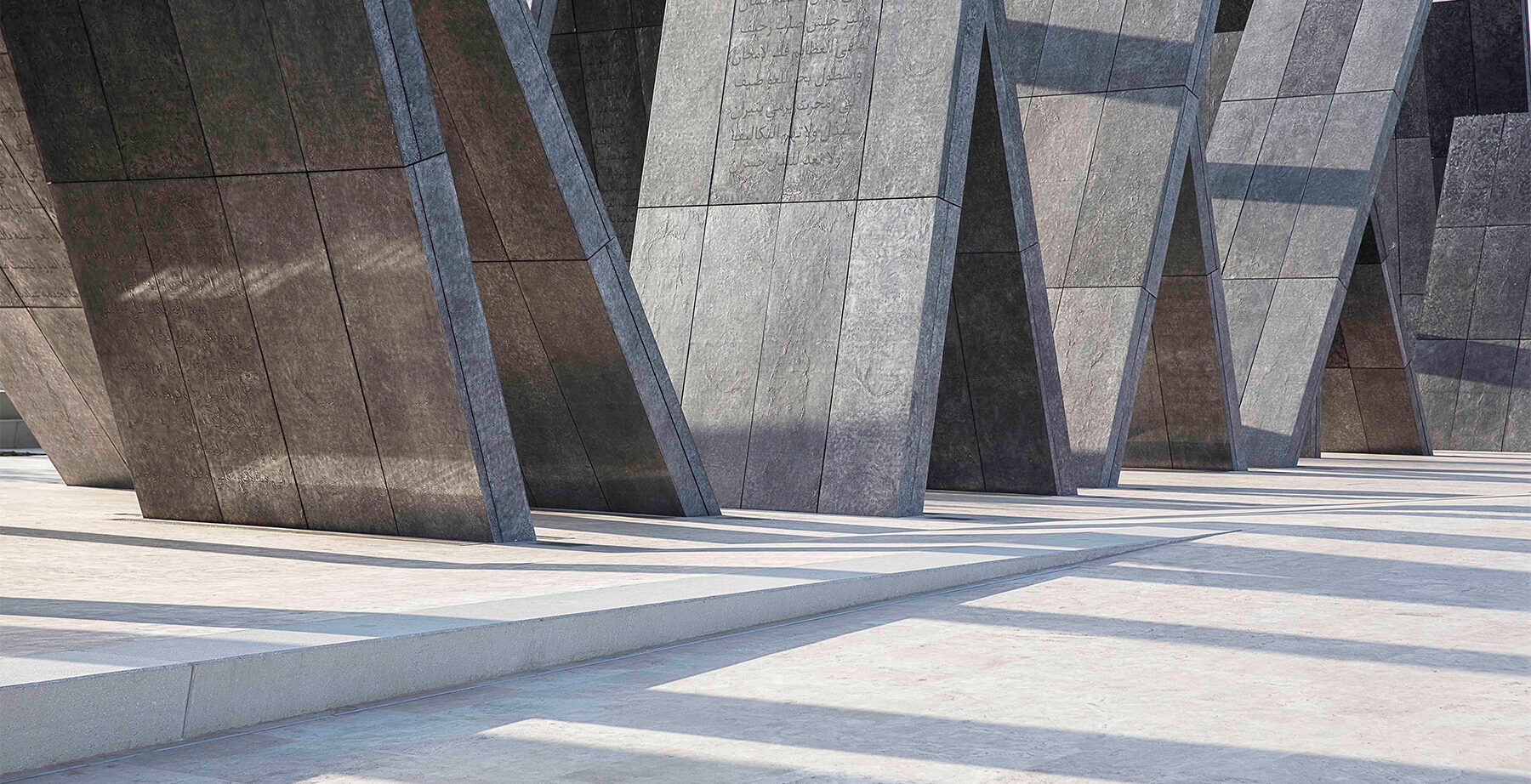 Both the monument and memorial are on massive scales. Their design and construction involved complex design processes and required extensive consideration in terms of both function and artistic expression. The scale of the project and its individual parts were each drawn and modelled individually and scrutinised in a computer modelling environment. This enabled Idris Khan to explore and conceptualise ideas in 3-dimensions. This process was important as it facilitated an environment of prototyping and experimentation that supported the refinement of ideas and enabled the conceptual intentions of Wahat Al Karama to be realised.